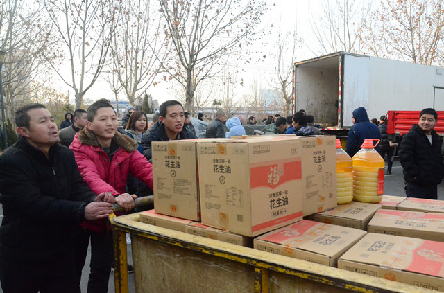 1月21日,公司主廠區廣場上再現熱烈氣氛,員工們以部門為單位,在這里領取公司為在崗員工和退休職工準備的豬肉、花生油、大米等“年貨”,以體現對廣大員工建設企業、奉獻事業的慰問之情。