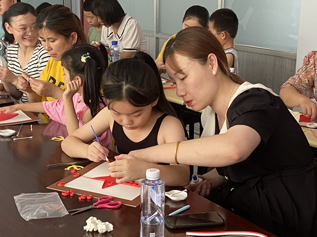在本次活動中,手工老師給大家講述了中國共產黨的發展歷程,黨徽的構成部分、由來及其代表的意義,并為大家示范了黨徽的制作過程。隨后,員工與員工子女一道,用博物館發放的制作材料,全神貫注地開始動手制作,涌現出了一批心靈手巧的“能工巧匠”。