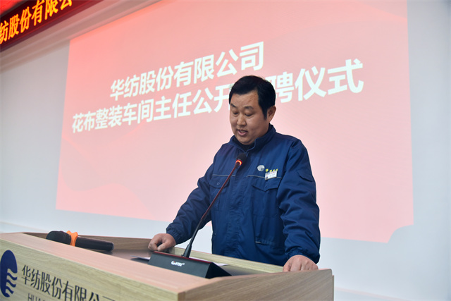 3月8日,公司公開選聘花布整裝車間主任的公開競聘會,在公司2號會議室舉辦。公司董事長盛守祥、總經理閆英山、質量總監李鳳明、總工程師羅維新、人力行政總監孫玉濤、花布公司副經理付建祥等9名公司管理人員擔任競聘會評委。符合競聘條件并通過自愿報名、組織選拔程序的門玉維、陳建軍、王國棟、劉國利四人參加當天的競聘演講及答辯。