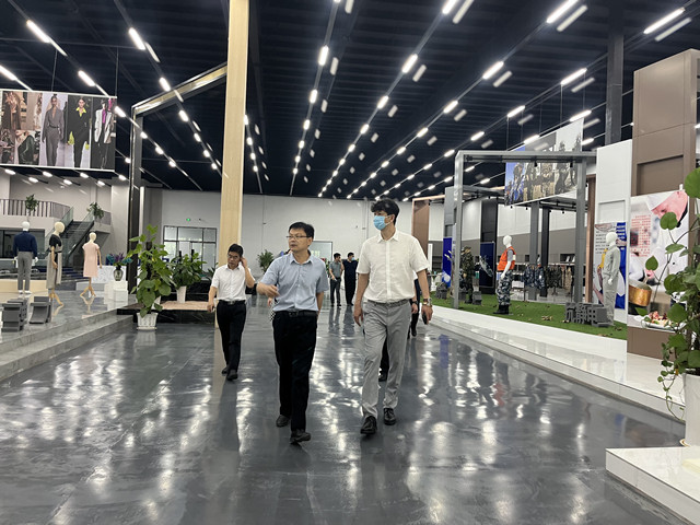 索立一行先后在智云中心、花布車間、面料車間、服裝面料展廳、花布展廳、家紡展廳、家紡創意中心、工程技術研究院、花布車間中控室等處進行考察調研。