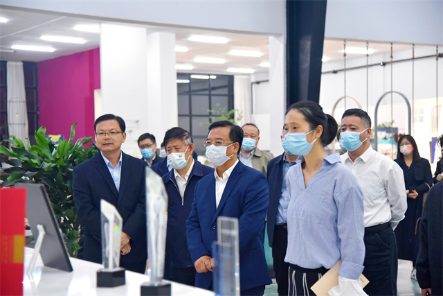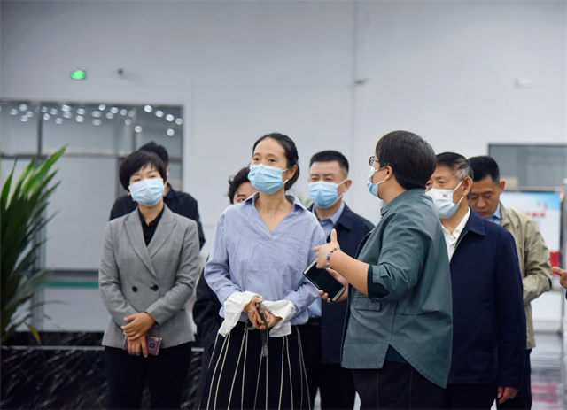 楊菡一行首先參觀了公司智云中心、服裝面料公司、花布公司、家紡公司、創(chuàng)意中心、工程技術(shù)研究院等,盛守祥向楊菡一行介紹了公司整體發(fā)展、智能制造、轉(zhuǎn)型升級(jí)等情況。