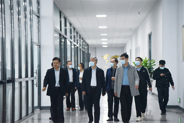 高建軍一行首先在會議室召開調(diào)研座談會。會上,盛守祥向調(diào)研組介紹了公司整體發(fā)展規(guī)劃、智能制造、科技創(chuàng)新、產(chǎn)品研發(fā)、市場開拓等方面的情況,孫中然圍繞公司當前信訪維穩(wěn)、信息安全、輿情處置、安全生產(chǎn)工作開展情況做了詳細說明,孫玉濤針對公司疫情防控措施及成效做了重點匯報。