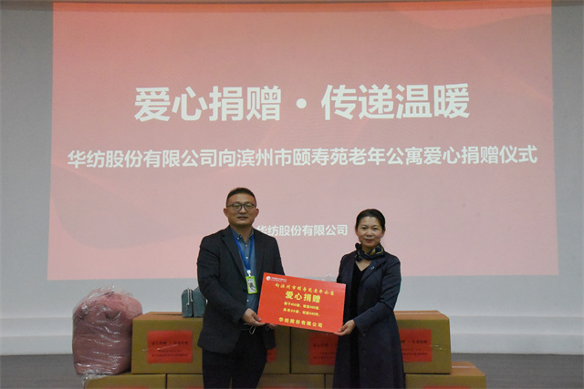 11月4日,公司舉行向?yàn)I州市頤壽苑老年公寓捐贈(zèng)愛(ài)心物資的活動(dòng)儀式。家紡分公司副總經(jīng)理曲偉華、濱州市頤壽苑老年公寓院長(zhǎng)鄢桂珍等參加了捐贈(zèng)儀式。