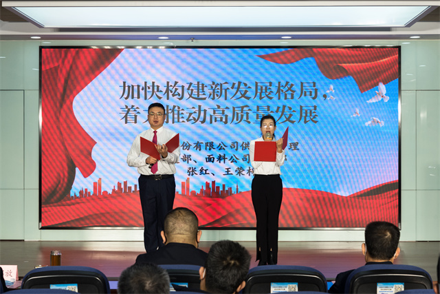 公司供應鏈管理黨支部、面料公司黨支部代表張紅、王榮梓誦讀《加快構建新發展格局 著力推動高質量發展》。堅持實事求是,融入高質量發展大局;堅持守正創新,拓寬高質量發展路徑;堅持行穩致遠,提升高質量發展能力。華紡股份將以高質量發展為目標,引領企業向更高水平闊步邁進。