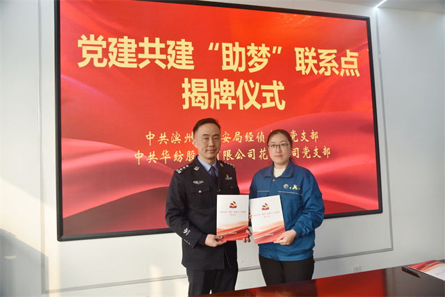 導讀:2月24日,華紡股份有限公司花布公司黨支部與濱州市公安局經偵支隊黨支部開展黨建共建“助夢”聯系點簽約暨揭牌儀式。