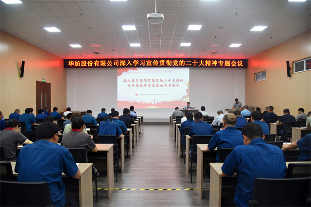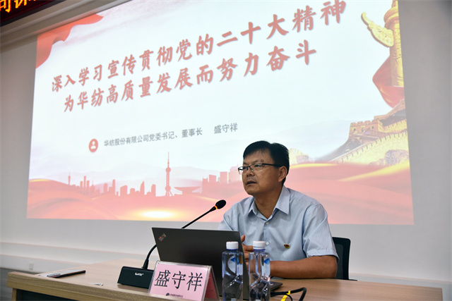 盛守祥指出,黨的二十大是在全黨全國各族人民邁上全面建設(shè)社會(huì)主義現(xiàn)代化國家新征程、向第二個(gè)百年奮斗目標(biāo)進(jìn)軍的關(guān)鍵時(shí)刻召開的一次十分重要的大會(huì),是一次高舉旗幟、凝聚力量、團(tuán)結(jié)奮進(jìn)的大會(huì)。大會(huì)回顧總結(jié)了過去五年的工作和新時(shí)代十年的偉大變革,闡述了開辟馬克思主義中國化時(shí)代化新境界、中國式現(xiàn)代化的中國特色和本質(zhì)要求等重大問題,對(duì)全面建設(shè)社會(huì)主義現(xiàn)代化國家、全面推進(jìn)中華民族偉大復(fù)興進(jìn)行了戰(zhàn)略部署。也為我們?nèi)A紡事業(yè)高質(zhì)量發(fā)展指明了前進(jìn)方向。華紡作為中國紡織印染行業(yè)重要骨干力量,將堅(jiān)決貫徹黨的二十大精神,牢牢把握新時(shí)代新征程黨的使命任務(wù),自覺把責(zé)任擔(dān)當(dāng)放在心上、扛在肩上,以高質(zhì)量發(fā)展為目標(biāo),踔厲奮發(fā)推進(jìn)高水平現(xiàn)代化企業(yè)建設(shè)。