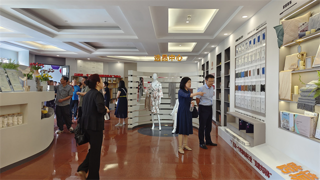 在華紡股份黨委書記、董事長盛守祥的帶領下,大家來到華紡老廠區,那里陳列著一幅幅彌足珍貴的歷史照片,它們鐫刻著大家共同奮斗的往昔歲月。在這些影像前,老員工們的思緒仿佛瞬間被拉回到那激情澎湃的年代,熟悉的面容、難忘的瞬間,一一重現眼前,喚起了無數美好回憶。緊接著,大家又來到華紡股份新廠區,參觀了智云中心、檢測中心、綜合辦公區、服裝面料公司、花布公司、家紡公司、創意中心、工程技術研究院等區域。每一步腳印,皆見證著公司的歷史演進;每一處細節,皆彰顯出公司對技術創新與產品升級的執著追求。