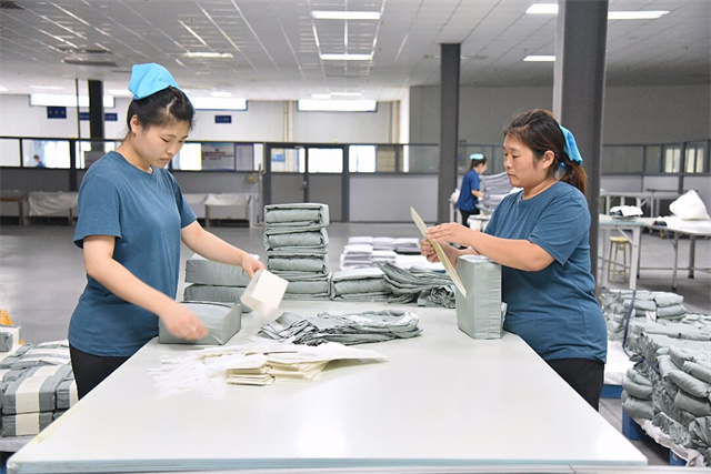 在高強度的工作環(huán)境下,王營和吳志叢不僅沒有放慢腳步,反而更加注重細(xì)節(jié),力求完美,確保每一件產(chǎn)品都達到卓越的品質(zhì)標(biāo)準(zhǔn)。最終,憑借她們不懈的努力與頑強的拼搏,完成天絲枕套熨燙4000件,整疊包裝枕套1600對,以兩人之力完成了相當(dāng)于五至六人的工作量。