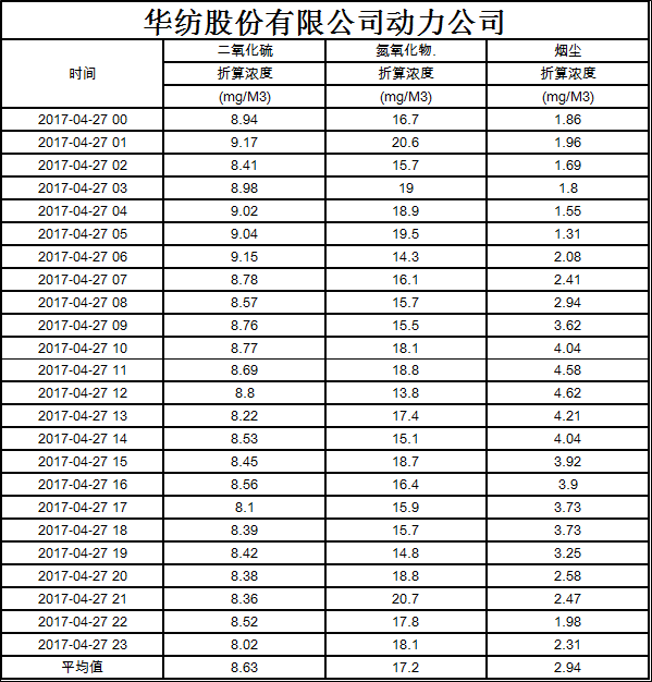 煙氣排放數據信息公開2017.4.27數據