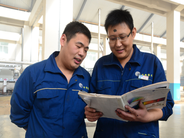 在11月份的勞動競賽中,花二車間甲班藺超超和薛超所在的6#印花機,以100%的完成率獲得車間競賽的第一名;不僅如此,機長藺超超帶領(lǐng)機臺取得的一個個好成績,使6#印花機成為了車間的標桿機組。藺超超說,機臺之所以能有百分百的計劃完成率,靠的是大家百分百的努力。